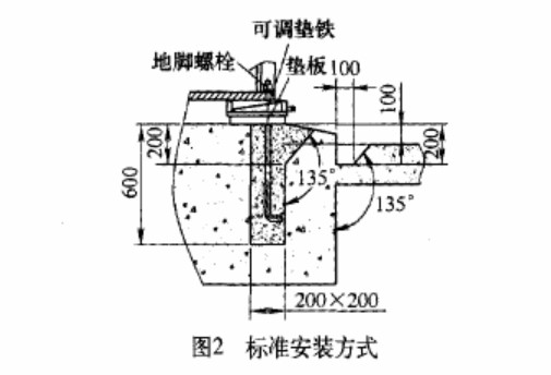 (1)壓鑄機的安裝 根據(jù)壓鑄機生產廠家的圖樣要求,傳統(tǒng)的設備安裝方式是采用先打設備基礎,預留地腳預埋孔(見圖2),待設備到廠水平粗調完畢后,再將地腳螺栓放進去灌漿,等混凝土凝固后才能進行設備精調。精調完成,周邊油水槽做好后還要等一段時間設備才能正常使用,基本上需要近一個月時間。在實際安裝過程中,考慮到上述安裝方式耗時過長,我們完全可以采用預埋鋼構的方式來進行設備的安裝。