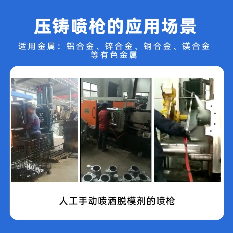 公司 生產(chǎn)的雙管噴槍(脫模劑專用噴槍)與小型空氣壓縮機(jī)連接,主要規(guī)格從長度300.400.500.600.700.800.900.1000.1500.1800。2000mm,材質(zhì)采用國標(biāo)銅鋁件精工制做,產(chǎn)品主要配套壓鑄廠家金屬高溫溶液。廣泛用于壓鑄件表面噴涂。