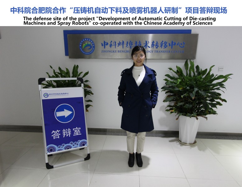 “壓鑄機自動下料及噴霧機器人研制”項目由蚌埠隆華壓鑄機有限公司代表人到達中科蚌埠技術(shù)轉(zhuǎn)移中心現(xiàn)場進行答辯