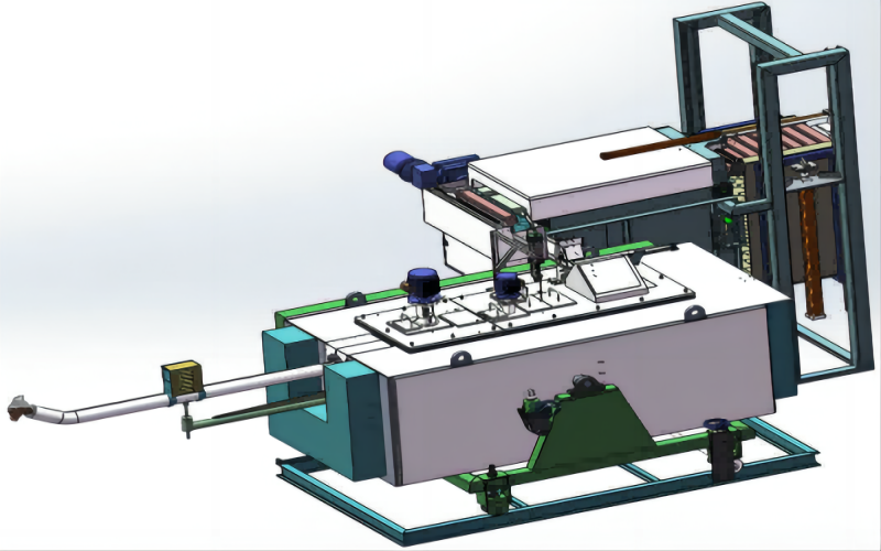 該預(yù)熱機用于對鎂錠進行預(yù)熱,并將預(yù)熱后的鎂錠自動輸送至爐內(nèi)。 預(yù)熱機采用蝸輪減速機帶動絲桿向上升降。 檢測到位置后,鎂錠由推錠氣缸送至預(yù)熱區(qū)進行預(yù)熱。 預(yù)熱后的鎂錠由推料氣缸送至送錠機構(gòu),順利送入坩堝內(nèi)。 這種預(yù)熱方式預(yù)熱效率高,加熱元件壽命長,占地面積小,根據(jù)型號尺寸一次可容納至少120個鎂錠。