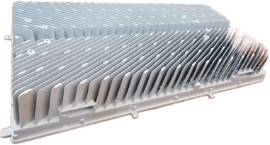 鋁合金半固態(tài)流變壓鑄件:散熱腔體大尺寸:903×445mm,高導(dǎo)熱率,導(dǎo)熱系數(shù)175W/m.k (常規(guī)壓鑄130W/m.K),壓鑄散熱片:100mm高,齒頂1.0mm,單邊拔模斜度0.8°。