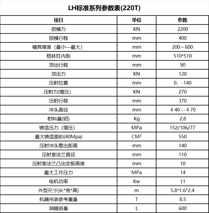LH-HPDC 220T 臥式冷室鋁合金壓鑄機(jī)