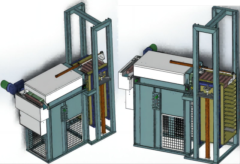 該預(yù)熱機用于對鎂錠進行預(yù)熱,并將預(yù)熱后的鎂錠自動輸送至爐內(nèi)。 預(yù)熱機采用蝸輪減速機帶動絲桿向上升降。 檢測到位置后,鎂錠由推錠氣缸送至預(yù)熱區(qū)進行預(yù)熱。 預(yù)熱后的鎂錠由推料氣缸送至送錠機構(gòu),順利送入坩堝內(nèi)。 這種預(yù)熱方式預(yù)熱效率高,加熱元件壽命長,占地面積小,根據(jù)型號尺寸一次可容納至少120個鎂錠。